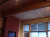 Wood beam 12 foot high ceilings, floor to ceiling windows, stained concrete