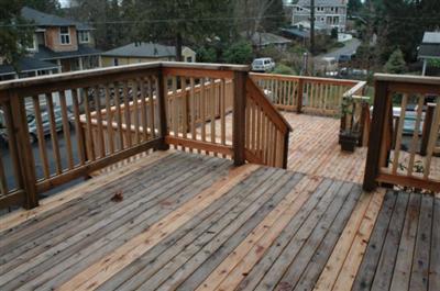 multilevel cedar decks, 2 car garage, and dramatic lighted, landscaped stair